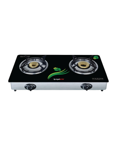 Double Burner Gas Stove, Glass Surface, Heavy Cast Iron Burner